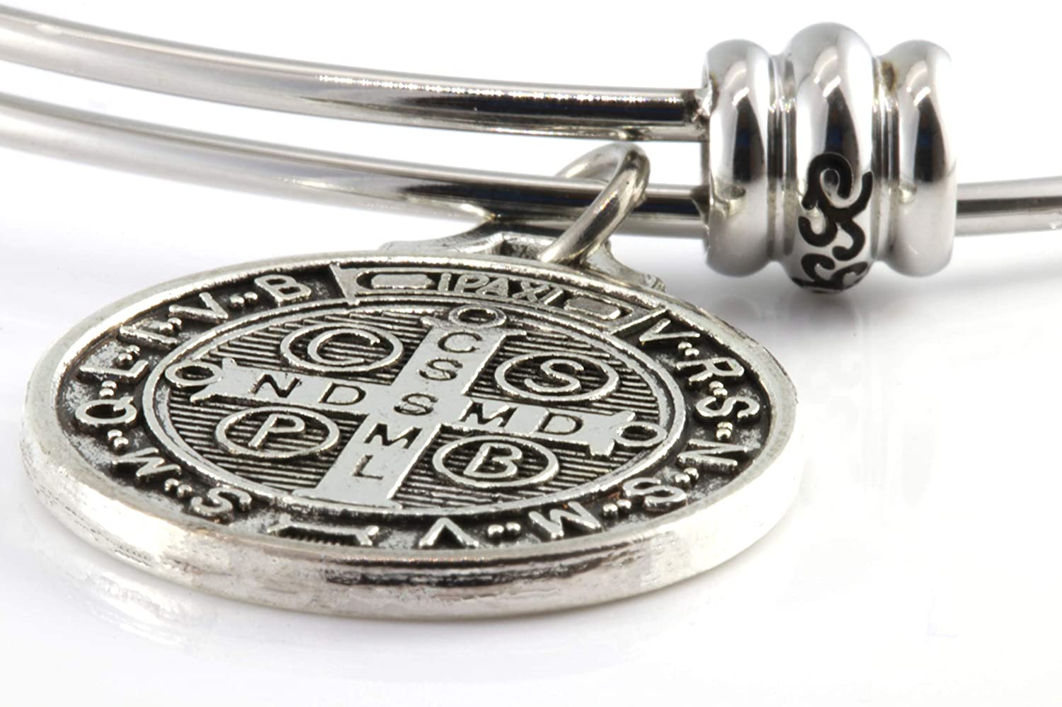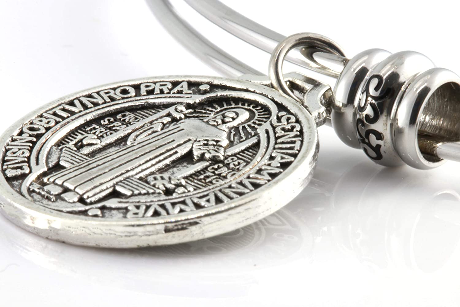 San Benito Bracelet | St Benedict Medals are Great Catholic Gifts or Confirmation Gifts and Medalla de san Benito a Stainless Steel Bangle for Sensitive Skin a Saint Benedict Bracelet for Men or Women