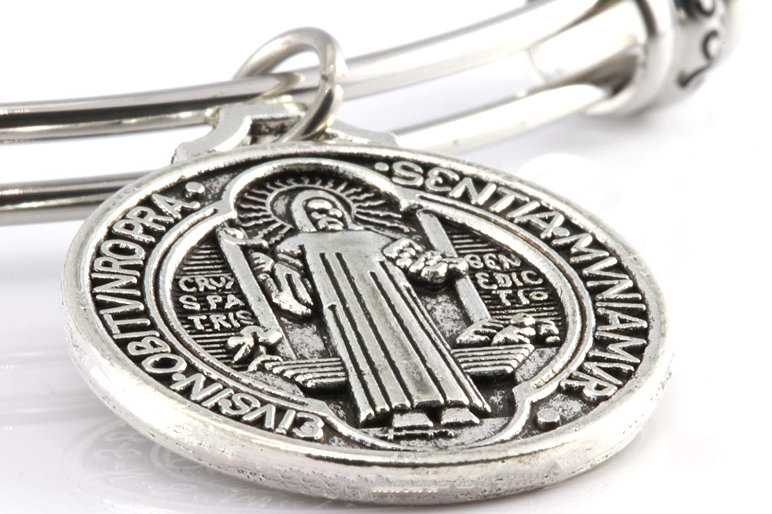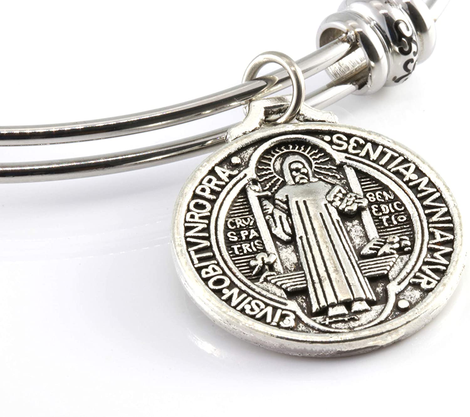 This St Benedict Catholic Jewelry Charm Bracelet Bangle is the Perfect Catholic Gift for Women and Lovers of St Benedict Medals. Great Religious Jewelry and Catholic Bracelet for Women Men.
