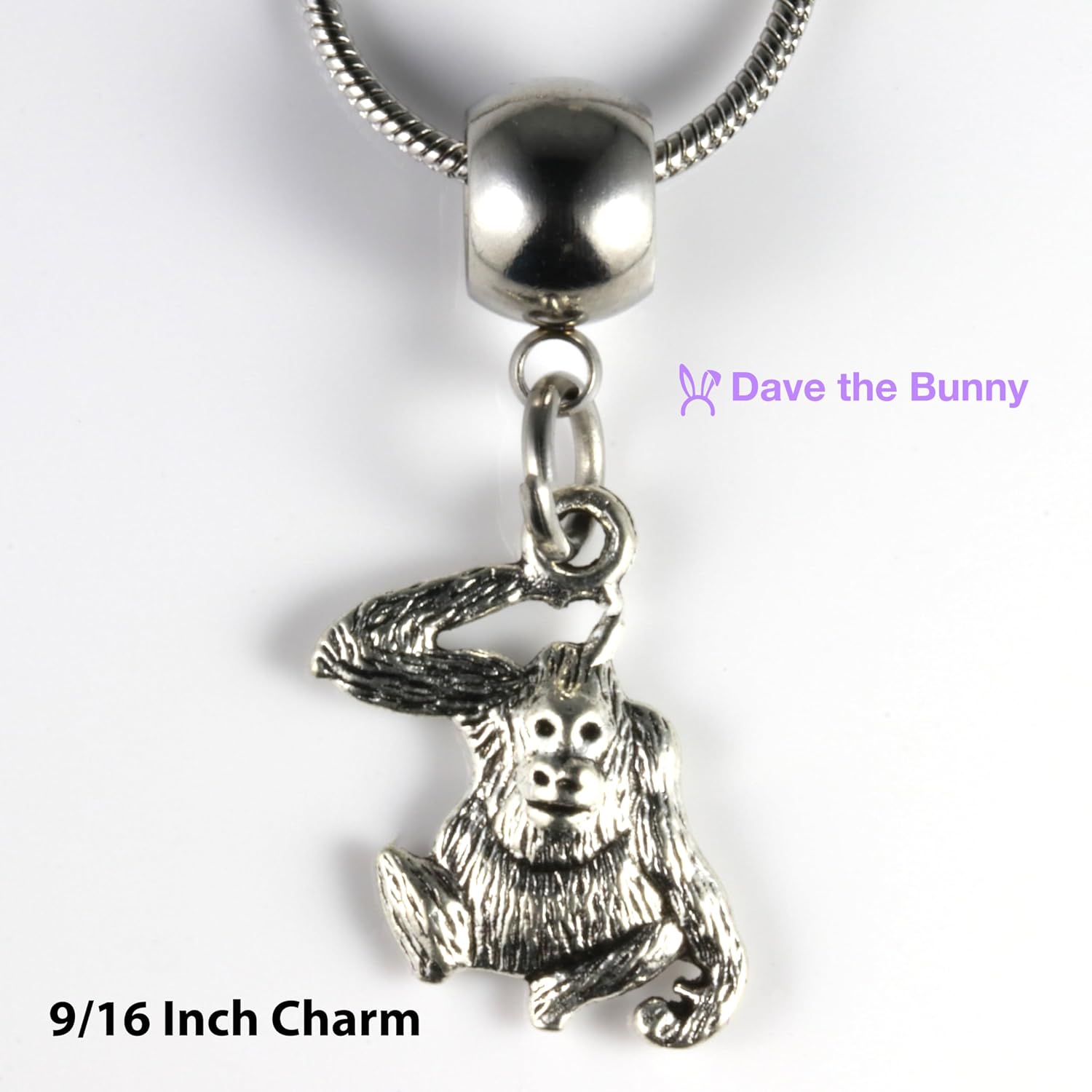 Dave The Bunny Orangatang Necklace - Funky Monkey Animal Jewelry: Elegant Animal Necklace with Monkey Stuff Stainless Steel Snake Chain and Durable Alloy Charm of a Orangutan Monkey Gifts for Women