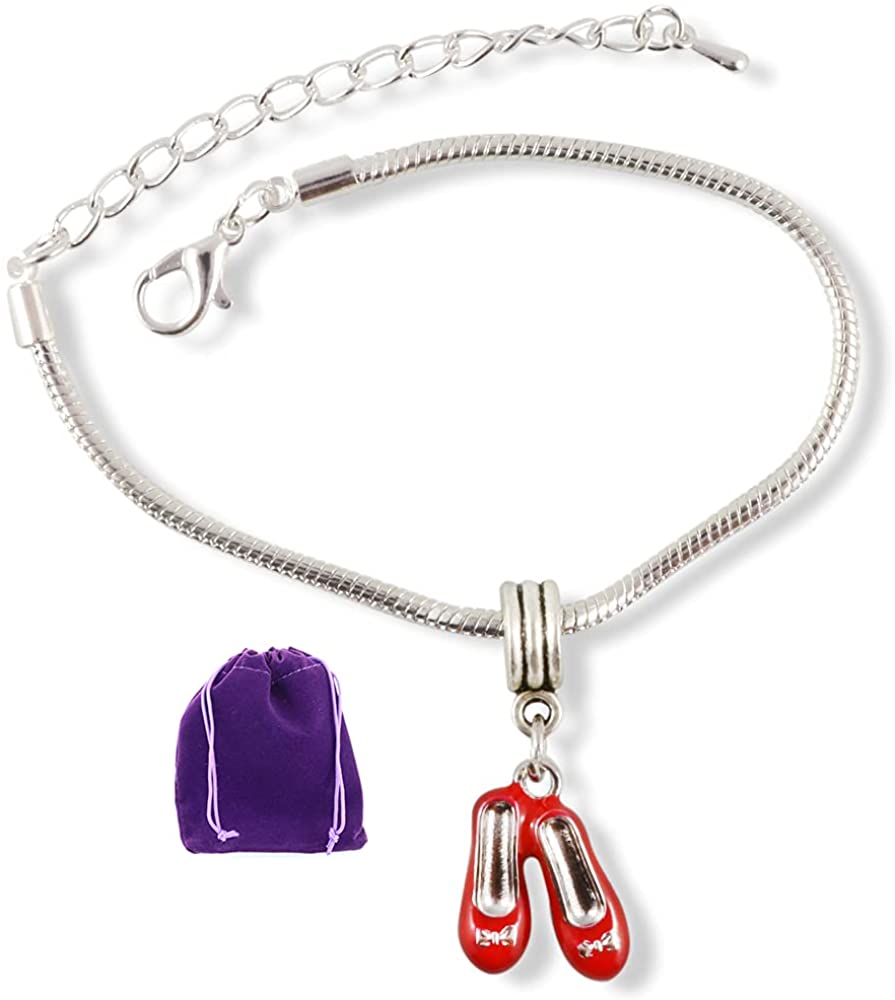 This Ruby Red Slippers Shoes charm bracelet is perfect for the Ruby Slipper lover. A great gift for a fan of Ruby Red Slippers or someone who just loves Ruby Red Slippers Shoes. This adjustable Silver Plated Snake Chain Bracelet is beautiful and comes with an easy to use lobster clasp. Fashionable for any occasion and can be worn with any outfit or suit. Ready to be ordered and shipped to you by Amazon.