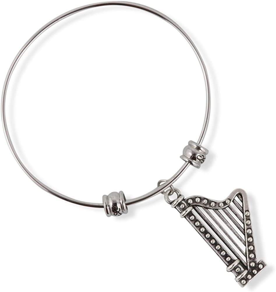 This Harp Musical Instrument charm bracelet is perfect for the music lover. A great gift for a student of music or someone who just loves Harps. This adjustable stainless steel bangle has beautiful scrolled wrist protectors. Fashionable for any occasion and can be worn with any outfit or suit. Ready to be ordered and shipped to you by Amazon.