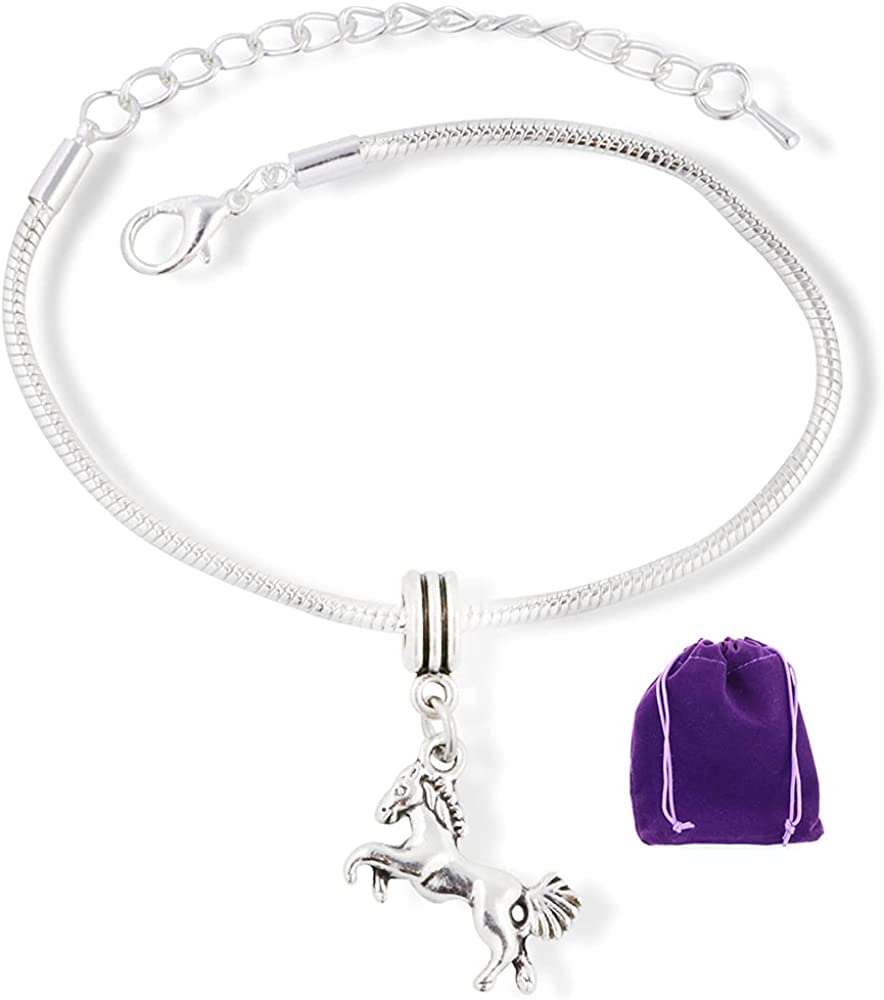 Emerald Park Jewelry Horse on Hind Legs with Bushy Tail Snake Chain Charm Bracelet