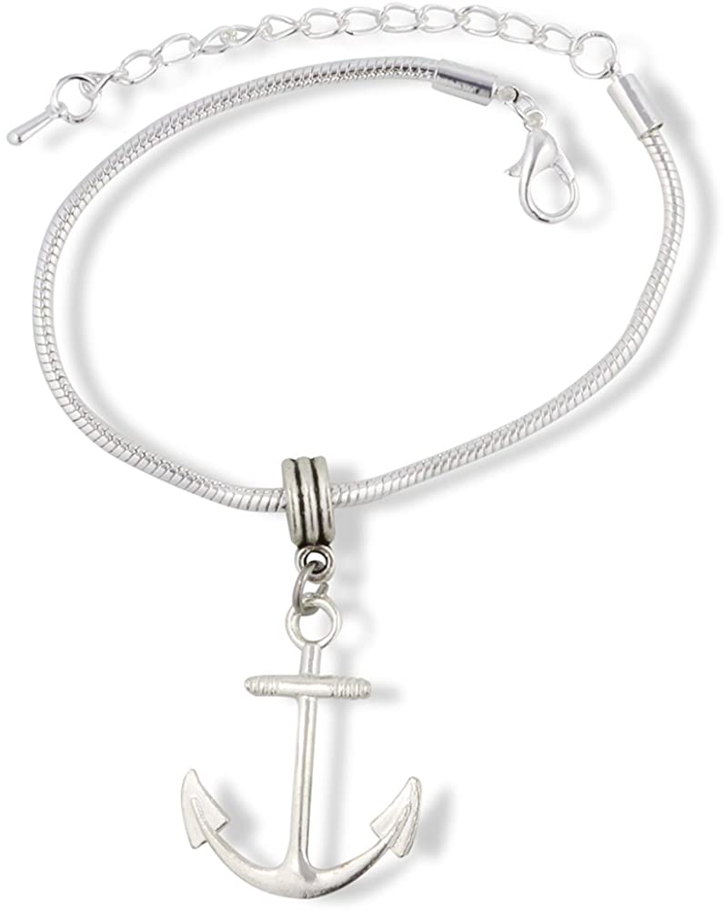 This Large Boat Anchor charm bracelet is perfect for those that love boating. A great gift for a Mariner or someone who just loves Large Boat Anchors. This adjustable Silver Plated Bracelet has a beautiful scrolled wrist protector and lobster clasp. Fashionable for any occasion and can be worn with any outfit or suit. Ready to be ordered and shipped to you by Amazon.