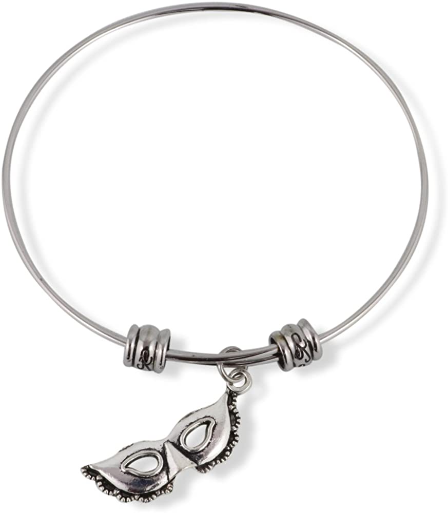 This Masquarade Party Mask charm bracelet is perfect for the party lover. A great gift for a student of costumes or someone who just loves Masquarade Party Masks. This adjustable stainless steel bangle has beautiful scrolled wrist protectors. Fashionable for any occasion and can be worn with any outfit or suit. Ready to be ordered and shipped to you by Amazon.