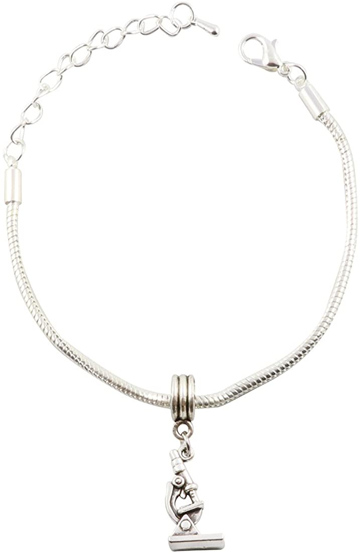 This Microscope charm bracelet is perfect for the science lover. A great gift for a student of biology or someone who just loves science. This adjustable Silver Plated Bracelet has a beautiful scrolled wrist protector and lobster clasp. Fashionable for any occasion and can be worn with any outfit or suit. Ready to be ordered and shipped to you by Amazon.