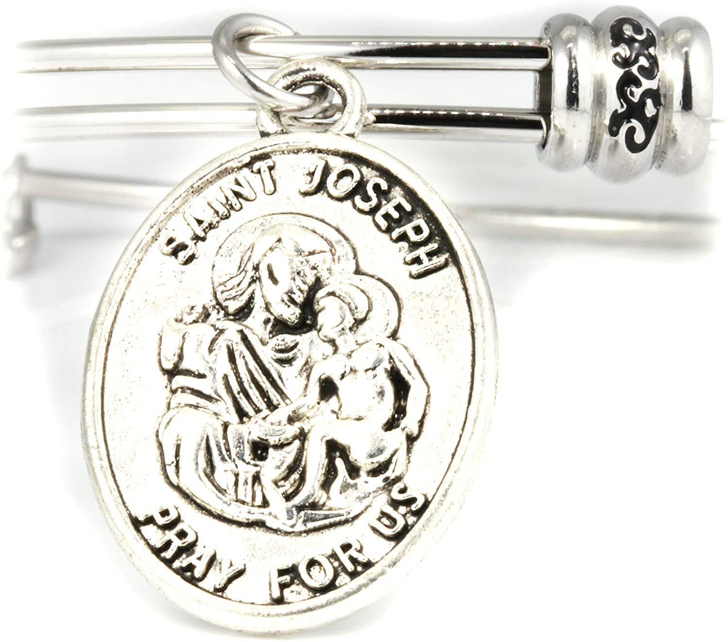 St Joseph Medal | St Joseph Bracelet Bangle makes Great Saint Joseph Jewelry for Men or Women