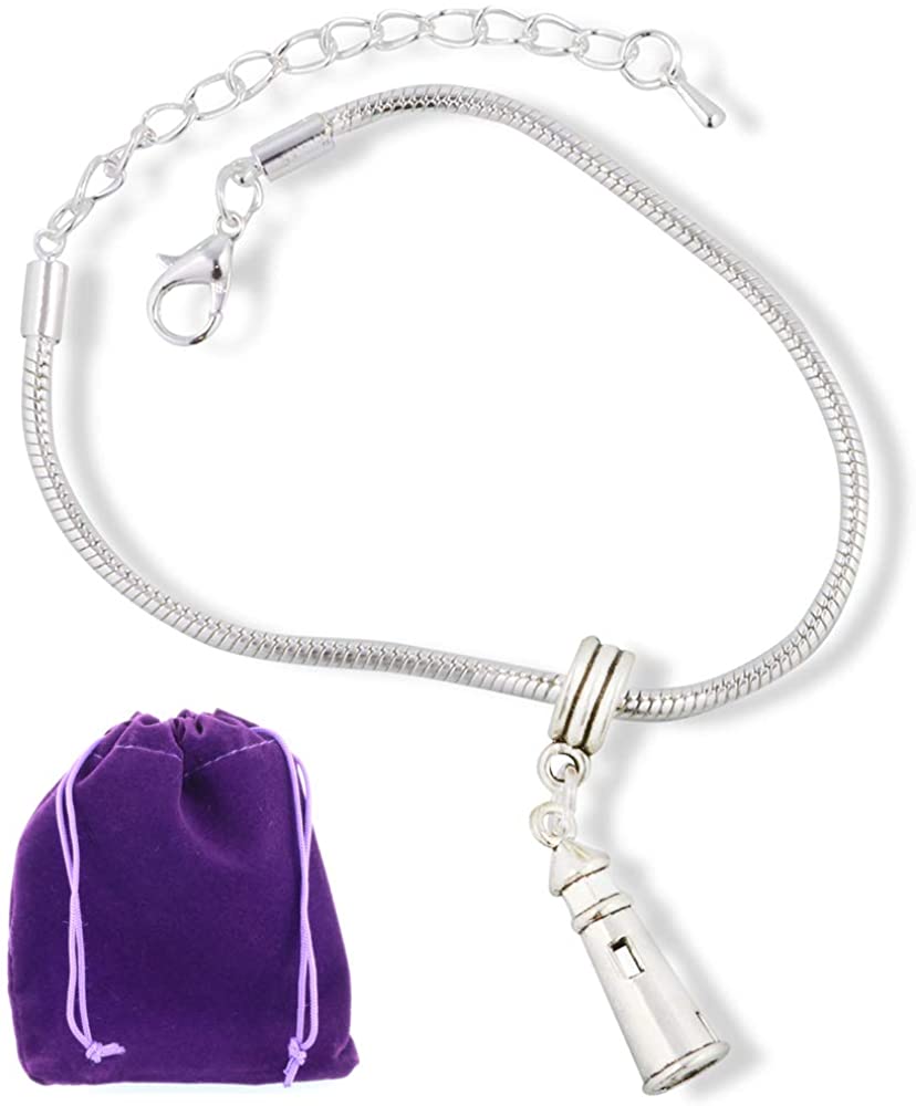 Lighthouse Bracelet | Light of Hope Symbolic Jewelry Lighthouse Charm on a Stainless Steel Snake Chain Bracelet as Lighthouse Jewelry for Women or Men with Lighthouse Hope Charms for Bracelets
