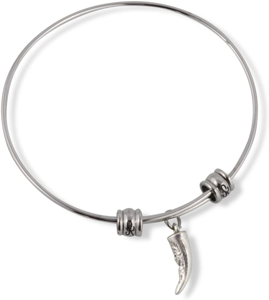 This Tusk with Native Carving charm bracelet is perfect for the carving lover. A great gift for a student of culture or someone who just loves Tusks Carvings. This adjustable stainless steel bangle has beautiful scrolled wrist protectors. Fashionable for any occasion and can be worn with any outfit or suit. Ready to be ordered and shipped to you by Amazon.